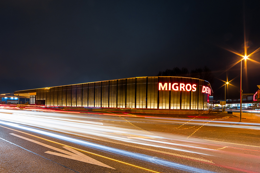 Um das von der Strasse gut ersichtliche Gebäude perfekt in Szene zu setzen, wird die Fassade mit dem LED-Linearprofil B34Q / klare Abdeckung hinterleuchtet. Gesteuert wird die energieeffiziente Fassadenbeleuchtung durch das modular aufgebaute ISYGLT-Lichtsteuerungssystem. Dadurch lassen sich Änderungen am Betriebskonzept jederzeit und unkompliziert umsetzen.