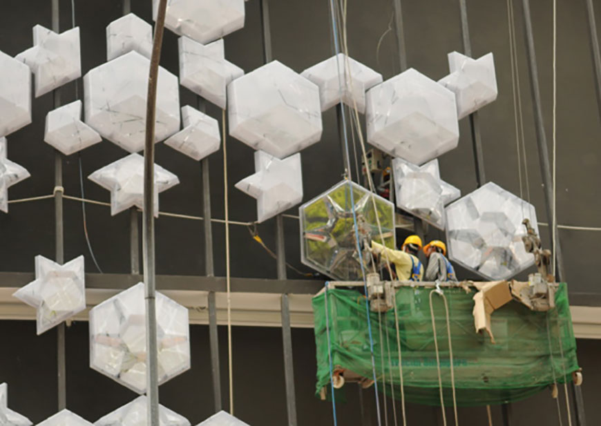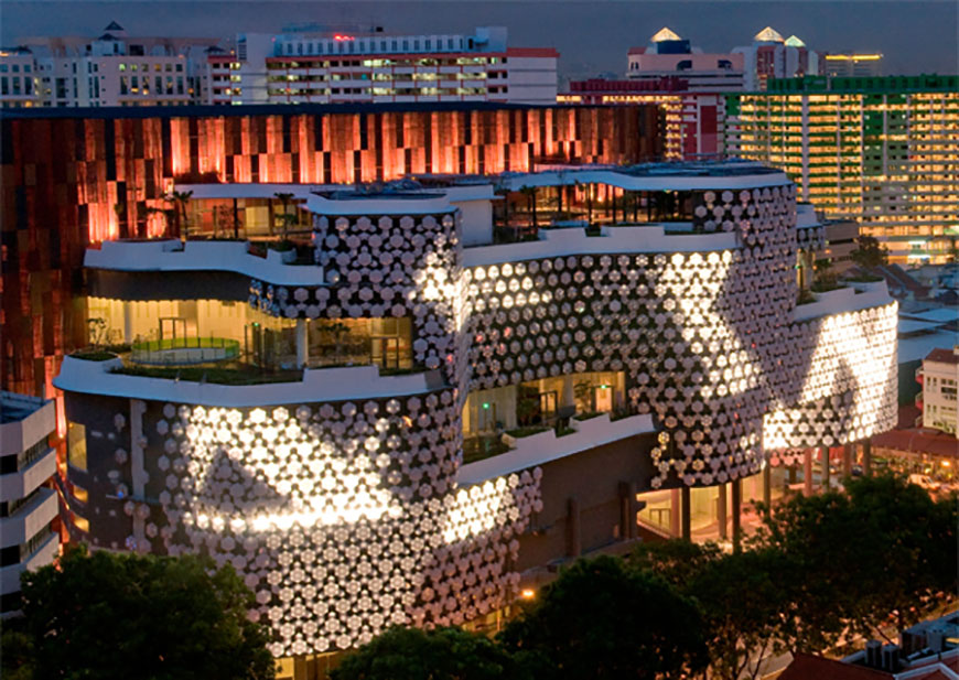 UEC Iluma ist eine videofähige Medienfassade welche mit 7000 einzeln ansteuerbaren Kompaktleuchtstofflampen Videos und Bilder auf einer Fläche von über 5000m2 anzeigen kann. UEC Iluma ist ein Fassadenentwurf, für Tag und Nacht. Das Konzept von realities:united verwischt die Grenzen zwischen der Idee einer Medienfassade und der eines klassischen ornamentalen, architektonischen Fassadenfilters zur Kontrolle von Belüftung und Belichtung. Die Fassade wird durch sich wiederholende Muster aus tiefgezogenen Kunststoff-Elementen gebildet. Eine Matrix aus Kompaktleuchtstofflampen überlagert diese eigenwillige Struktur, wodurch sich einerseits ein überdimensionales Mediendisplay formt, welches jedoch gleichzeitig durch die einzigartige Geometrie der Leuchten selbst, durch Variationen in der Musterbildung und der Durchnbrechungen gleich wieder verzerrt wird.